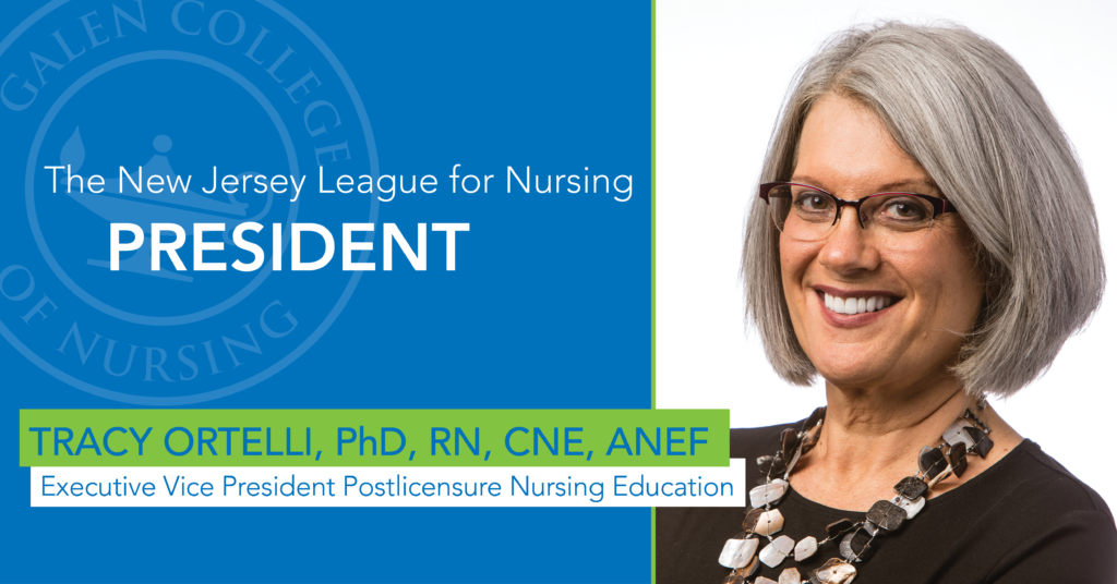 June 18, 2020 – Louisville, KY – The New Jersey League for Nursing (NJLN), an affiliate of the National League for Nursing proudly announced their newly elected President, Tracy Ortelli, PhD, RN, CNE, ANEF. Dr. Ortelli, Executive Vice President Postlicensure Nursing Education at Galen College of Nursing, will serve a two-year term through spring of 2022.